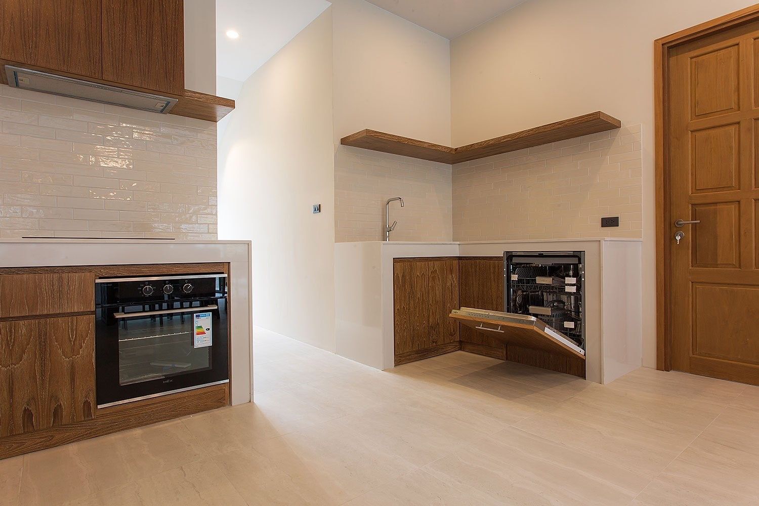 • Contemporary kitchen with built-in cabinets and premium appliances: